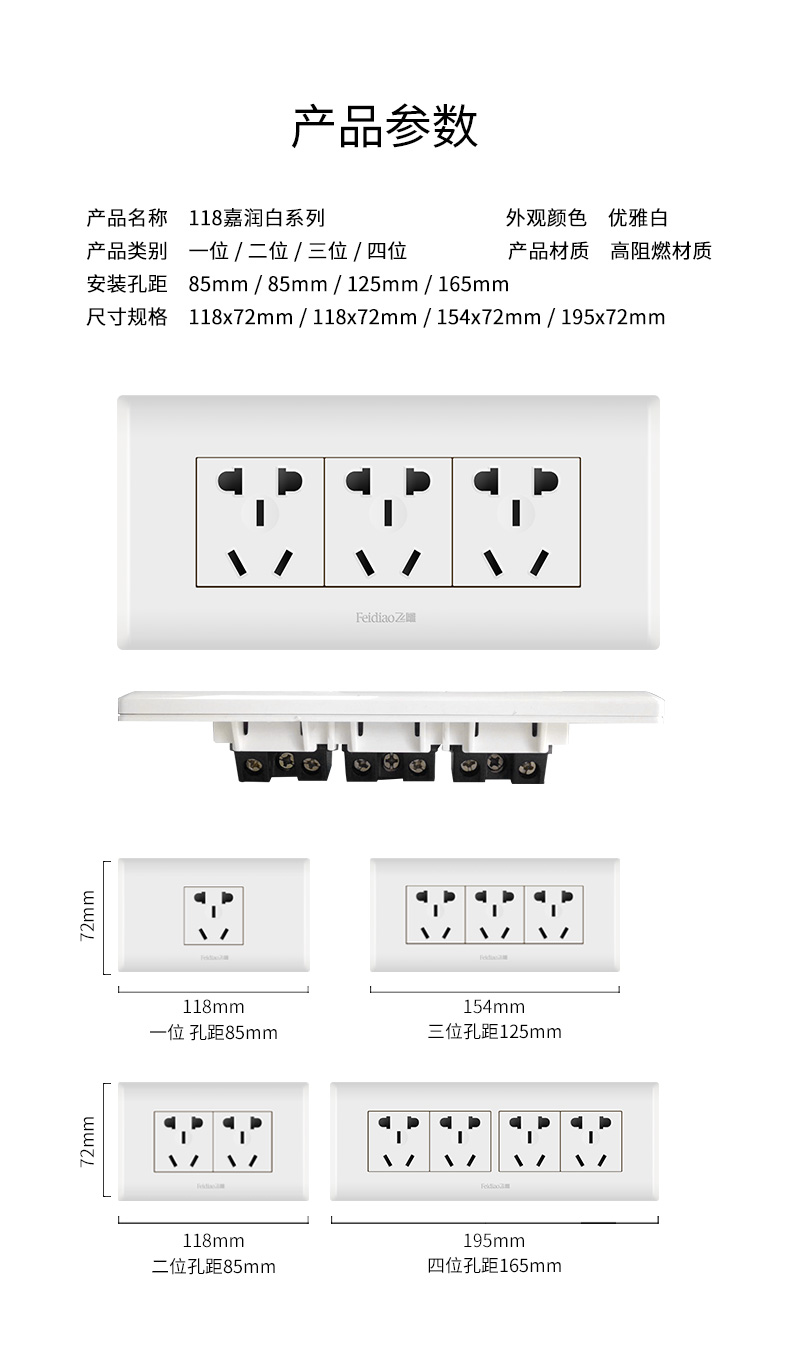 飞雕产品 开关插座 开关插座 A3嘉润118系列